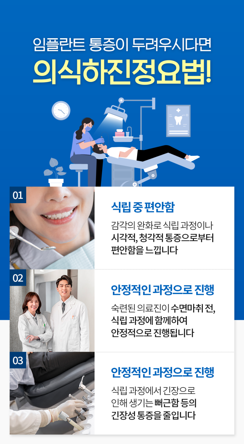 “이가 썩고 빠져서 일상생활이 힘들어요.” “치과 의사가 임플란트를 해야 한다고 했는데 너무 무서워서 시작할 수가 없어요.”