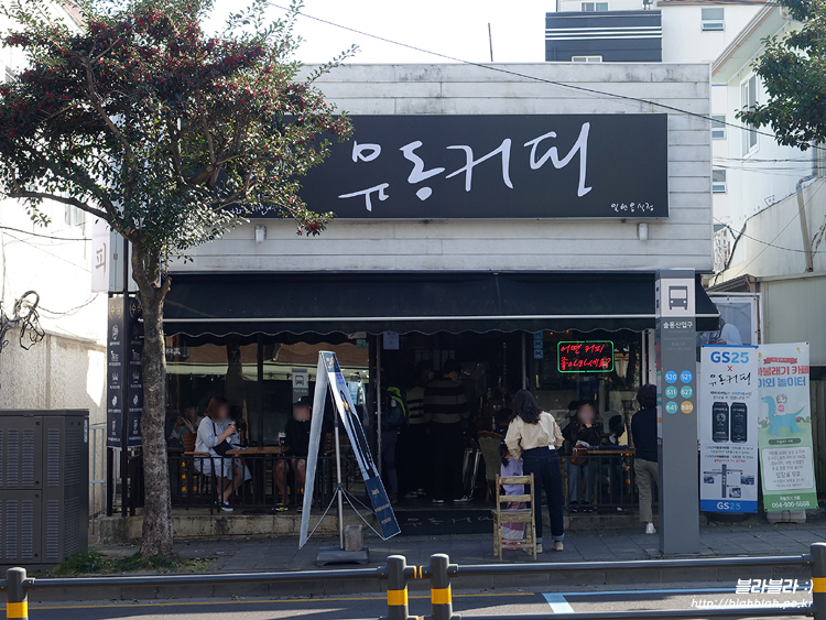 커피잔을 들고 있는 유동커피 사장님의 익살스러운 모습도 독특하다. 제주도에 가면 본점에 들러 사장님 얼굴과 비교해보고 싶다. 가게 앞에는 초록색 벤치가 있어서 앉아서 기다리셔도 됩니다.