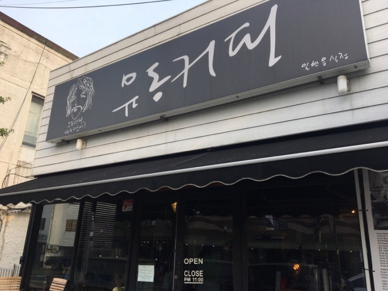 커피잔을 들고 있는 유동커피 사장님의 익살스러운 모습도 독특하다. 제주도에 가면 본점에 들러 사장님 얼굴과 비교해보고 싶다. 가게 앞에는 초록색 벤치가 있어서 앉아서 기다리셔도 됩니다.