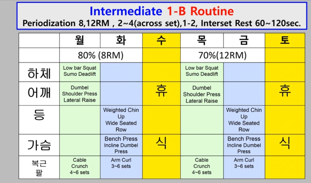 이민석 연신내공원체육관 팀장 고등학교 때부터 웨이트 운동을 시작해 쉬는 기간까지 포함해 11년 동안 웨이트 트레이닝을 해왔다. 현재 연신내역 연신내공원체육관에서 3년정도 근무하고 있어요! 이 정도 경력의 트레이너?! (연신내체육관 / 연신내PT) 성과를 위한 노력 안녕하세요. 연신내공원체육관 이민석 팀장, 연신내체육관 연신내PT입니다. Who… blog.naver.com 위 블로그에 가시면 제가 보디빌딩 대회를 준비하면서 참가한 내용을 적어놨으니 들어가셔서 구경하시면 됩니다! 그리고 저는 현재 2024년 보디빌딩 대회를 준비하고 있습니다! 오늘의 블로그 컨텐츠는 1. 분할운동 입니다! 2. 운동루틴!3. 긴장을 푸는 방법 4. 운동팁! 5. 보디빌딩 대회 준비, 바디프로필 준비! 6. 연말을 맞이하는 EVENT! 나누는 방법! 분할은 (등/이두근), (가슴/삼두근), (어깨/하체), (등), (가슴), (어깨/팔), (등), (등), (등), (등) 등 크고 작은 근육으로 나누어서 이루어집니다. 가슴) ), (어깨/팔), (하체) 하체는 일주일에 한 번만 하고, 부족한 상체 근육에 좀 더 집중하고 있어요! 유산소의 경우 보디빌딩 대회와 바디프로필을 준비하는데 3일을 보낸다. 1~4개월 정도 준비하고 1~2개월 남은 시점부터 실내자전거를 1~2시간 정도 탄다. 왼쪽.) 루틴을 어떻게 설정하나요? 오늘은 하체운동하는 날이라 먼저 루틴 정하는 방법을 영상과 사진으로 알려드리고자 합니다! 스쿼트 동작의 어느 부분이든 스트레칭을 해서 몸을 충분히 워밍업하고 시작해도 동작을 하는 동안 전혀 불편함을 느끼지 않습니다. 한 번 더 확인하기 위해 먼저 다관절 운동(다관절 운동은 두 개 이상의 관절이 움직이는 동작)부터 시작합니다. 그래서 1. 첫 번째 동작, 바벨 스쿼트. 나는 내가 들 수 있는 무게의 20~30% 정도로 가동범위를 설정한다. 먼저 몸을 따뜻하게 하는 동작을 최대한 많이 하면서 6~12개 동작으로 4세트를 했습니다. 그 후 첫 동작의 무게를 내가 들 수 있는 중량의 60~80%로 추가 설정하고 6~8동작씩 2~3세트를 했습니다. 당신도 이것을 할 수 있습니다. Smith Lunge 2. 두 번째 동작 : 런지의 균형을 유지하거나 스쿼트로 긴장되지 않았던 부위의 긴장을 완화시키기 위해 런지 동작을 수행하였다. 런지 동작 중 집중력을 높이기 위해 흔들림을 걱정할 필요가 없는 스미스머신을 사용하였습니다. 계속해서 사용하세요! 그리고 대부분의 사람들은 뒷발을 위로 올려서 하겠지만 저는 무게중심과 가동범위를 편안하게 만들기 위해 앞발에 디스크를 배치합니다. 스미스 런지 사진을 보면 무릎보다 골반이 더 안정적으로 낮아지는 모습을 볼 수 있다. (주의) 가장 주의해야 할 점은 앞발의 무게중심과 허리의 컬링이다. 다리 사이의 간격은 너무 멀리 잡지 마세요!) 무게의 경우 50% 정도 들 수 있는 무게로 설정되어 있으며 개수는 6~12 3개 입니다. 세트. 3정도까지 진행했습니다. 세 번째 동작은 레그 컬(Leg Curl)이었습니다. 세 번째 동작에 레그 컬을 넣은 이유는 가동범위를 늘리고 등 근육을 사용할 수 있도록 하기 위해서였다. 대부분의 사람들이 앉아서 보내는 시간이 많기 때문에 허리 근육이 눌려 약해지게 됩니다. 근육뭉침이 심하신 분들이 많으신데, 이를 보완하기 위해 체력이 남아있을 때 열심히 운동을 하게 되었습니다! 4. 4악장 레그프레스에서는 뒷부분의 근육을 더 많이 사용할 수 있도록 레그 컬 동작을 통해 앞쪽보다 뒤쪽의 근육에 더 많은 피로감을 주었고, 레그 프레스를 했을 때, 다리 전체에 자극을 주며 지금까지 심한 운동을 하지 않았습니다. 고중량으로 운동하려면 70~80% 비율로 6~8회씩 3~4세트를 합니다. 레그 프레스 (오늘은 몸이 좋지 않아 가벼운 웨이트를 사용했습니다.) 5. 다섯 번째 동작인 와이드 스쿼트를 실시하여 가동범위를 제한하고 짧게 움직이며 안쪽과 허리를 자극하고 마지막 에너지를 사용했습니다. 영상을 보시면 와이드스쿼트발의 위치를 쉽게 잡는 방법을 쉽게 아실 수 있습니다. 최대 개방 위치보다 약간 더 높습니다. 무릎이 안쪽으로 뭉치는 것을 방지하기 위해 무릎을 모아야합니다. 중량을 설정할 때 상체에 부담을 줄 만큼 충분한 중량을 들어올릴 필요는 없습니다. 12가지 운동을 3세트 정도 했어요! 이렇게 루틴을 정하고 운동을 진행했어요. 루틴 같은 경우에는 지루하지 않고 몸이 적응하지 않도록 매번 바꿔준다. (항상 똑같은 분할과 루틴을 하면 금방 포기할 수 있으니 다양한 방법으로 하는 것을 추천드려요!! 정답은 없습니다.) 휴식?? 저희는 세트마다 중간에 쉬는 시간을 주로 가지고 있어요 1분, 2분 정도인데 목적에 따라 휴식시간이 30초, 3분 정도로 길어질 때도 있다. 오늘은 컨디션이 좋지 않거나, 역기를 들 때 심박수를 높여 유산소 운동을 하는 것 같은 느낌이 든다. 에너지를 주기 위해 30초의 휴식시간을 줄 때도 있습니다. 장점은 유산소를 하지 않아도 다이어트가 가능하다는 것이고, 단점은 충분한 휴식을 취하지 않아서 숨이 차서 집중력이 떨어지고, 회복이 되지 않는다는 점이다. 에너지가 없으면 역기를 들 수 없습니다. 근육 성장이 충분하지 않을 수 있습니다. 3분 정도의 긴 휴식의 장점은 충분한 휴식을 취하면 다시 무거