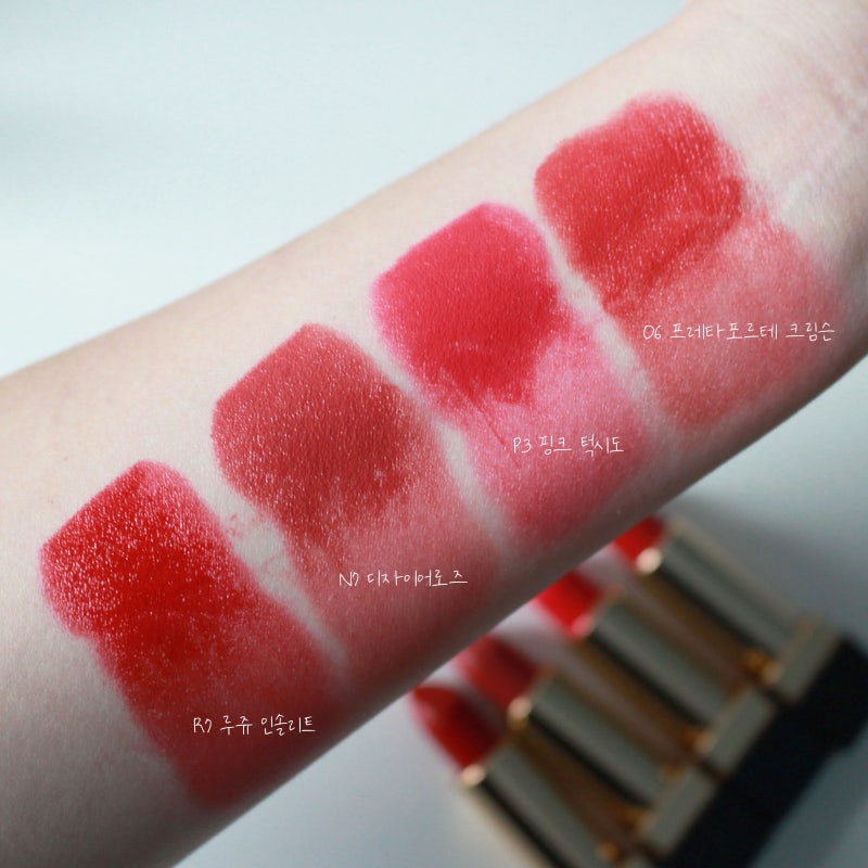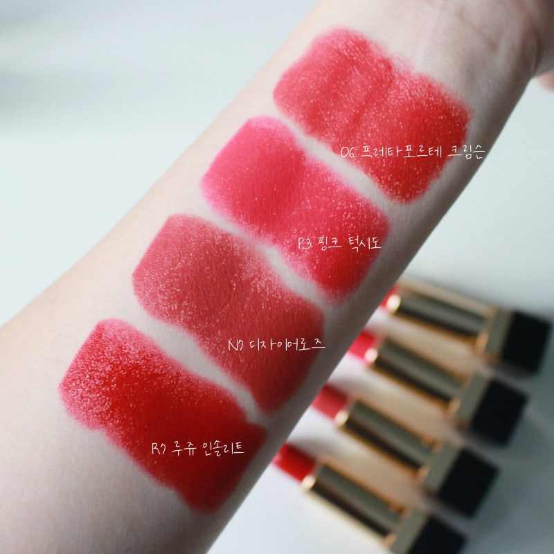 입생로랑 뷰티 루즈 푸르 꾸뛰르 신제품 립스틱 추천 4종 N7 디자이어 로즈 P3 핑크 턱시도 O6 프레타포르테 크림슨 R7 루즈 인솔릿 입술에 바르면 더 예뻐요! 내가 가장 좋아하는 것은 프레타포르테 크림슨(Pret-a-Porter Crimson)이다. 두 번째는 무엇입니까? 예상치 못한 핑크 턱시도
