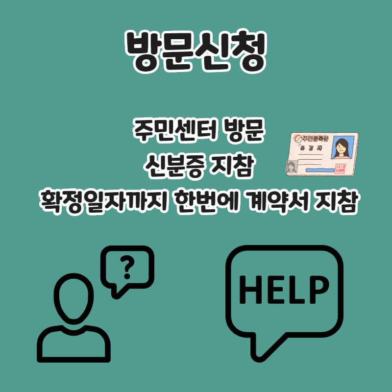 입주신고 확인일을 진행하는 것은 어렵지 않으나, 우선 이사한 동네 주민센터에 가서 신청하세요. 신분증을 지참하시고, 제공된 신고서를 작성하여 제출해 주시기 바랍니다. 이때 확정일자도 받을 수 있고, 임대계약서도 필요하며 스탬프와 날짜를 받을 수 있습니다.